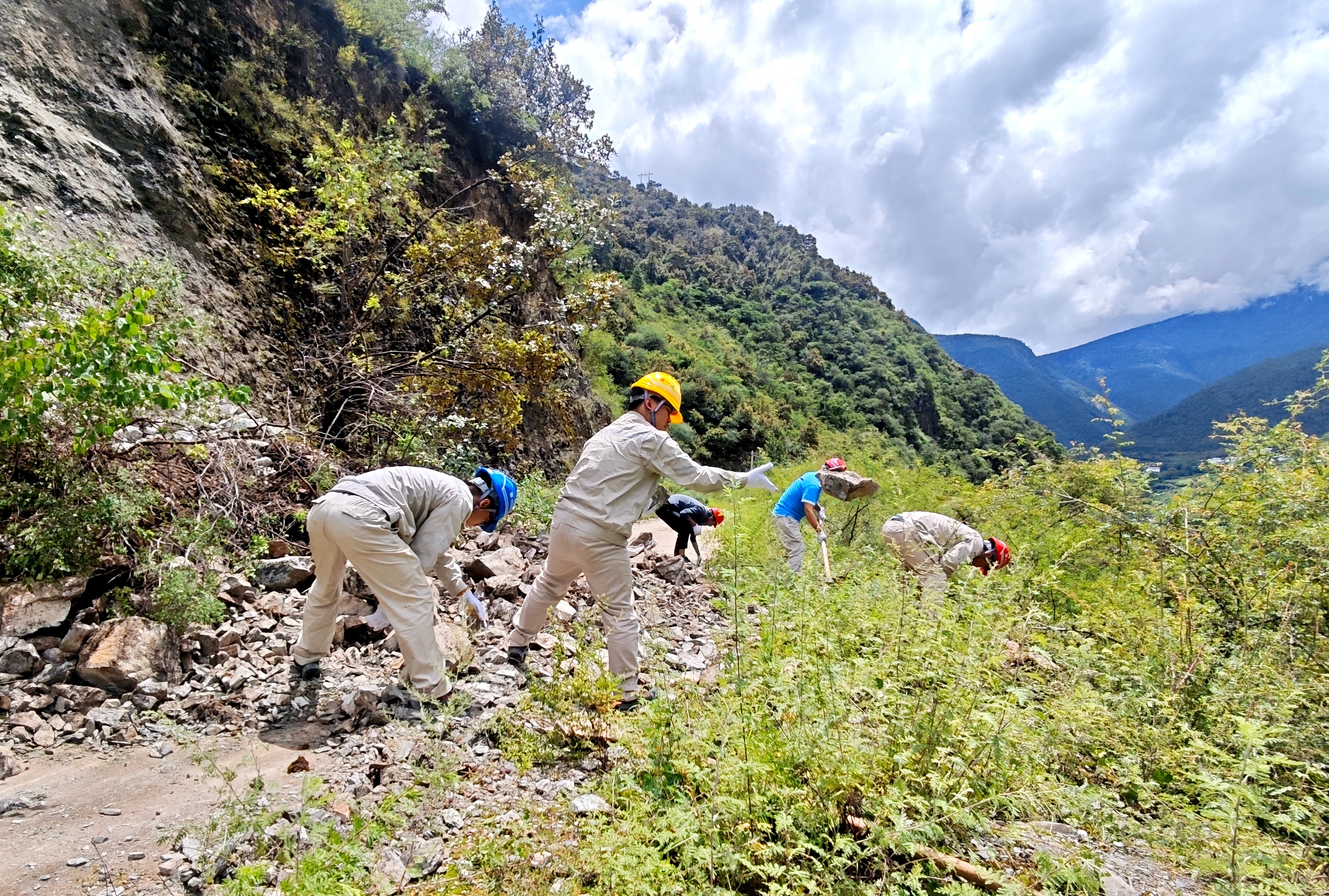 上游來(lái)水不斷增加,大壩水位持續(xù)增高,崗一水電廠(chǎng)迅速啟動(dòng)應(yīng)急預(yù)案,一支由運(yùn)行和維護(hù)人員組成的“搶險(xiǎn)突擊隊(duì)”火速成立。突擊隊(duì)每天兩次徒步穿越險(xiǎn)象環(huán)生的滑坡區(qū),冒著持續(xù)降雨和次生災(zāi)害的風(fēng)險(xiǎn),艱難往返于生活區(qū)與大壩之間。4公里的路程,每次上行需耗時(shí)約45分鐘。泥濘濕滑的山路上,每一步都是意志與體力的考驗(yàn)。正是他們頑強(qiáng)的意志,堅(jiān)定的腳步,踏出了一條守護(hù)大壩和下游安全的“生命通道”,確保每日閘門(mén)操作的精準(zhǔn)執(zhí)行與水情信息的及時(shí)報(bào)送,真正踐行“缺氧不缺精神,海拔高境界更高”的錚錚誓言。