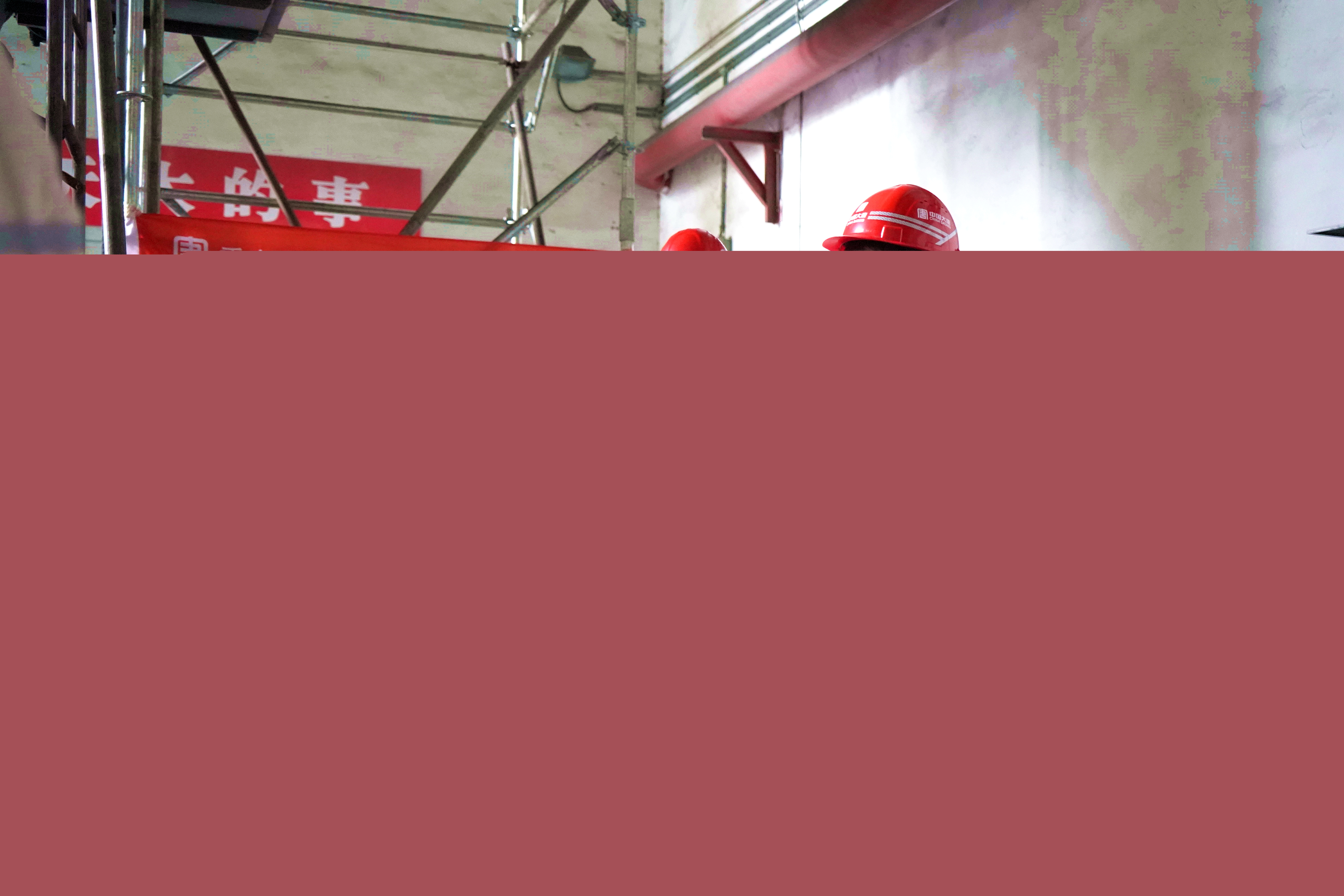 夏日陽光照耀在那鮮紅的“紅巖先鋒”突擊隊(duì)隊(duì)旗上,光影交錯(cuò)映照著黨團(tuán)員們忙碌的身影,黨團(tuán)員們的工裝很快被汗水浸出深色痕跡。