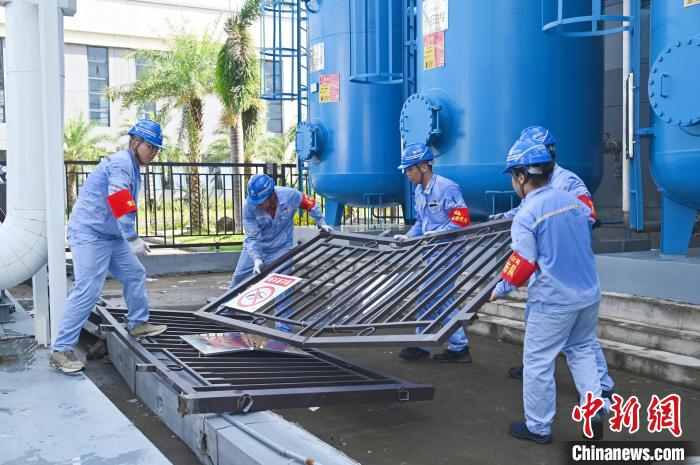 9月8日,海口,大唐??诠驹趶S區(qū)內(nèi)開展災(zāi)后設(shè)備設(shè)施修復(fù)工作 (大唐海南公司供圖)