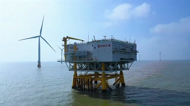 濱海海上風(fēng)電公司海上升壓站(王勛/制作)