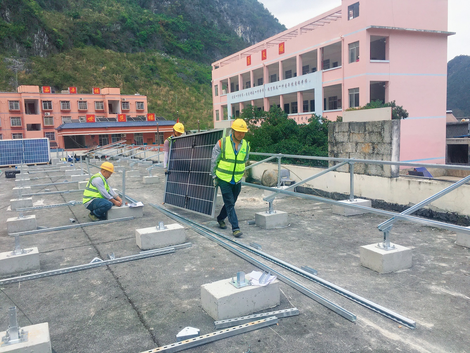 施工單位正在安裝光伏板