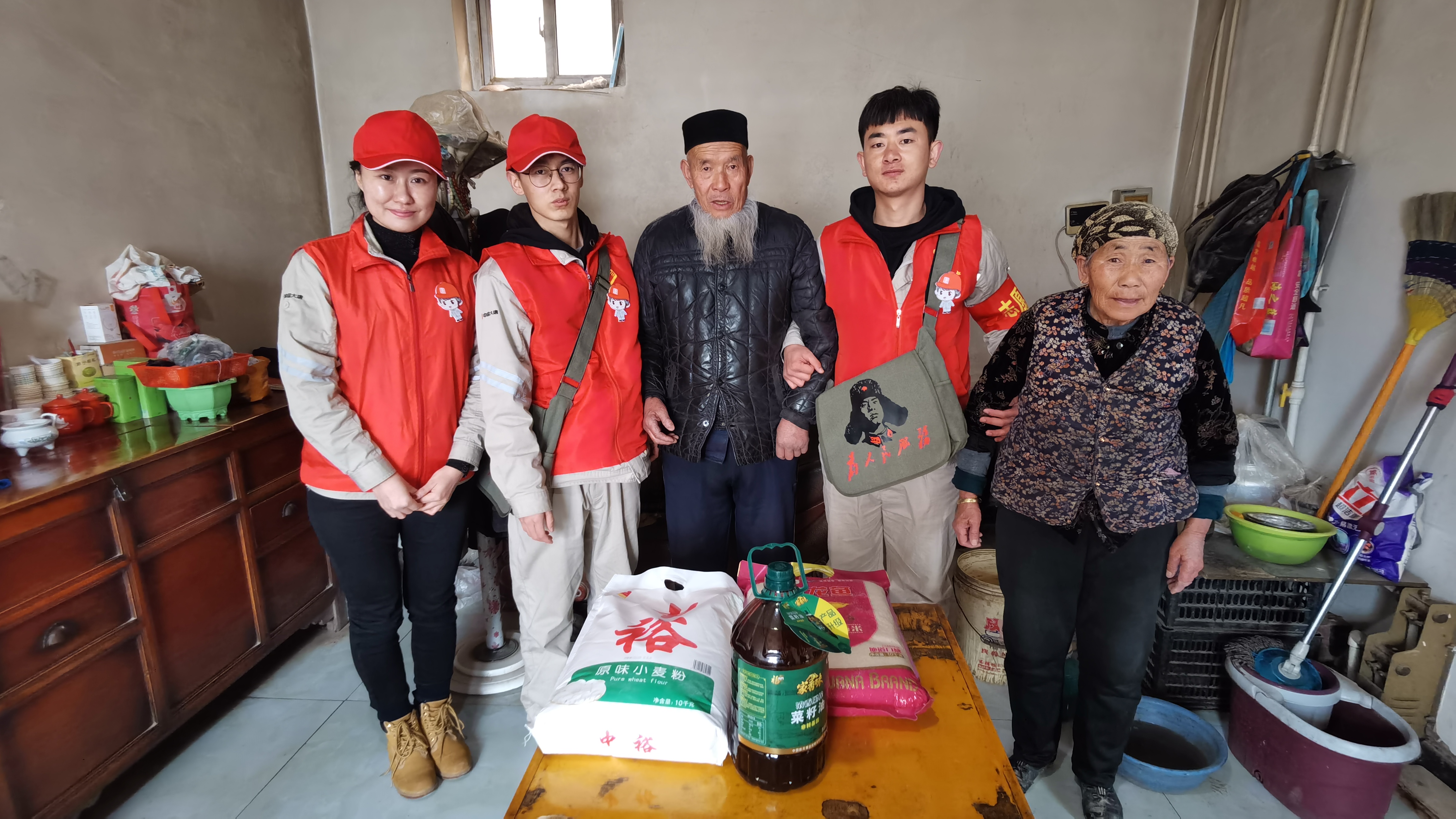 志愿者們帶著米面油等慰問(wèn)品走訪慰問(wèn)
