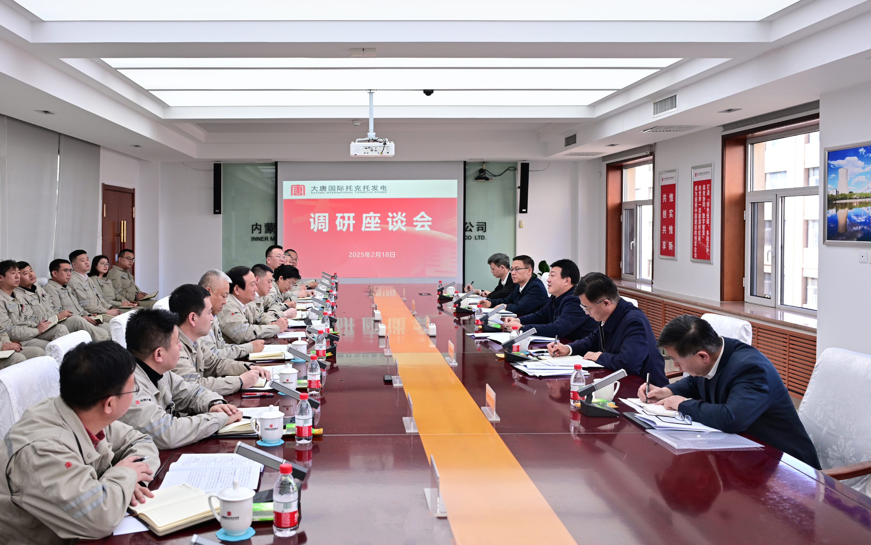 集團(tuán)公司總部有關(guān)部門負(fù)責(zé)人及相關(guān)人員、大唐國際主要負(fù)責(zé)人等參加調(diào)研。托電領(lǐng)導(dǎo)班子成員、中層干部以及職工代表參加調(diào)研座談會(huì)。