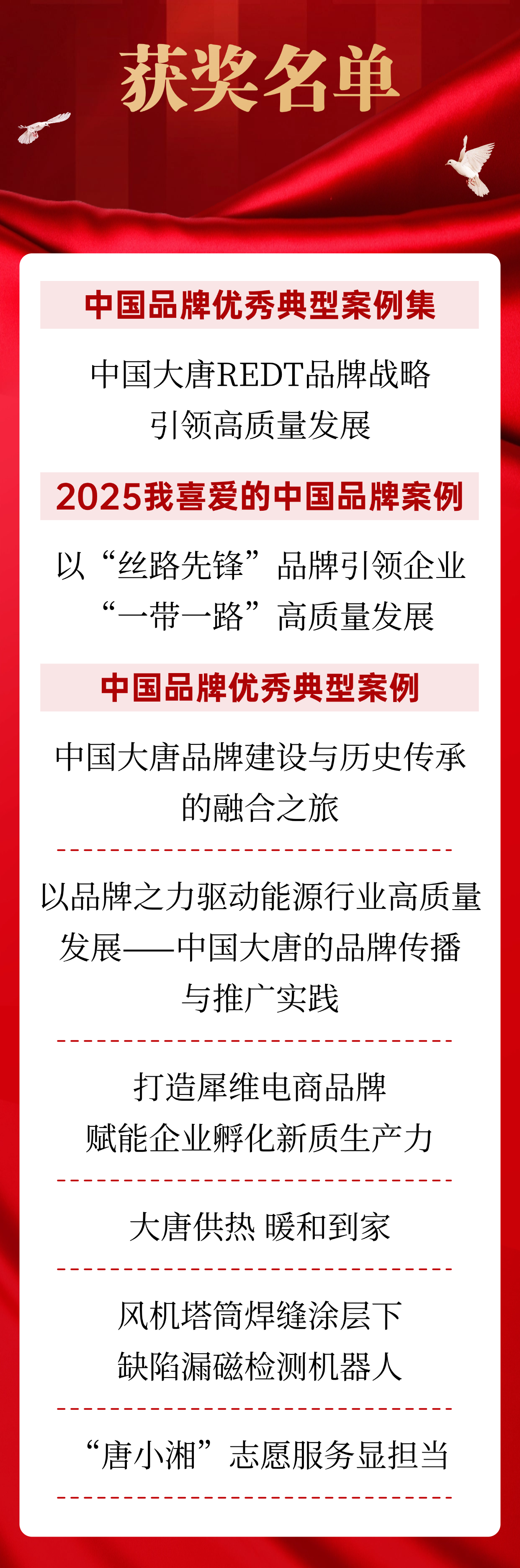 中國大唐此次入選的8個案例,內(nèi)容豐富、領(lǐng)域廣泛,充分展現(xiàn)了品牌建設(shè)的系統(tǒng)性與多樣性。