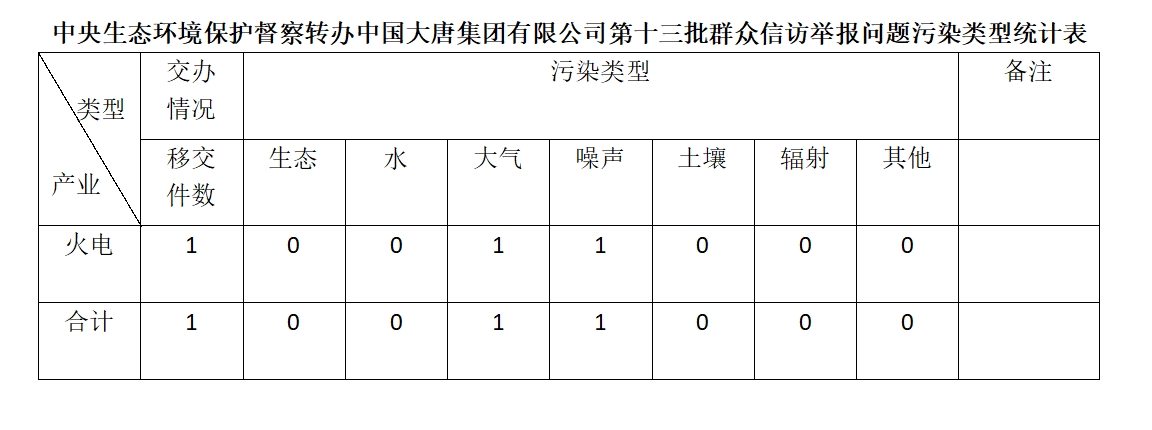 2025年6月19日,中央第七生態(tài)環(huán)境保護督察組向中國大唐集團有限公司移交第十三批群眾信訪舉報件,共計1件,為來電舉報,涉及大氣問題1個、噪聲問題1個。所有舉報件辦理工作已第一時間進入調(diào)查核實辦理程序,辦理情況將按照相關(guān)要求反饋督察組,并及時向社會公開。